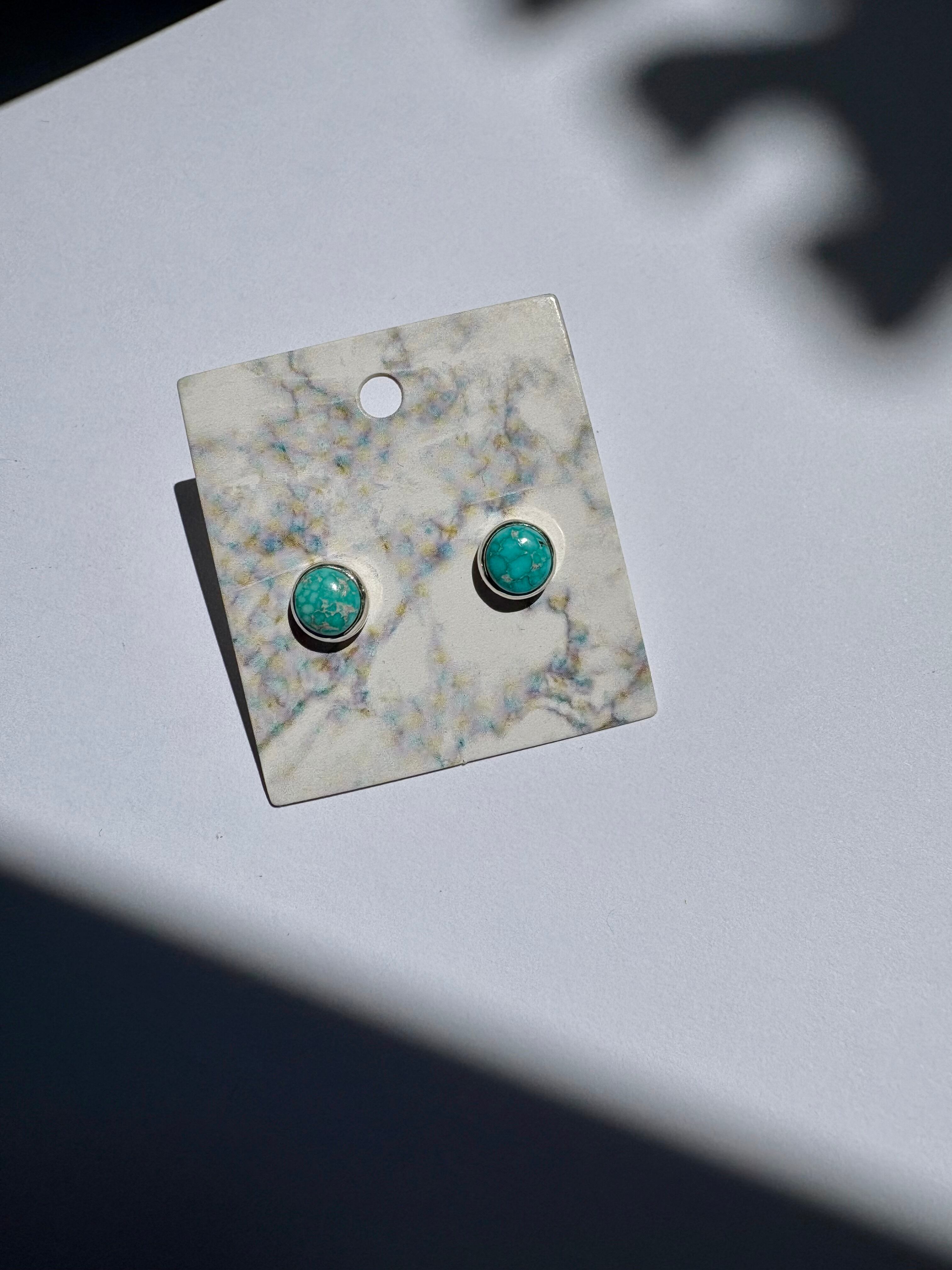 南国の海のようにブルーグリーンの綺麗なホワイトウォーターターコイズをシンプルなピアスに仕上げました。