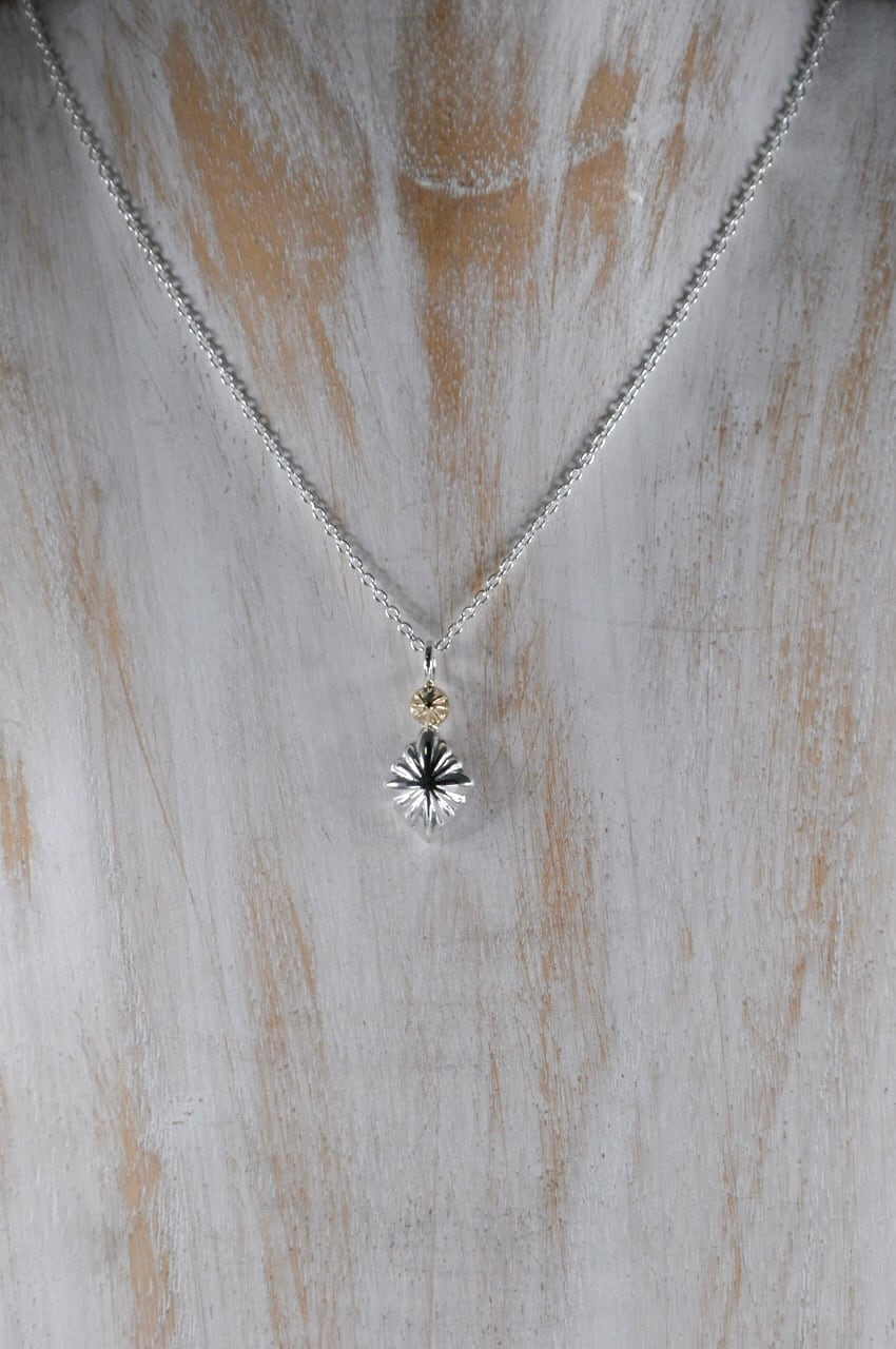 太陽の光を表現した小さくてお守りになるようなネックレスが創りたいと思い誕生したSunburst pendant necklace。
