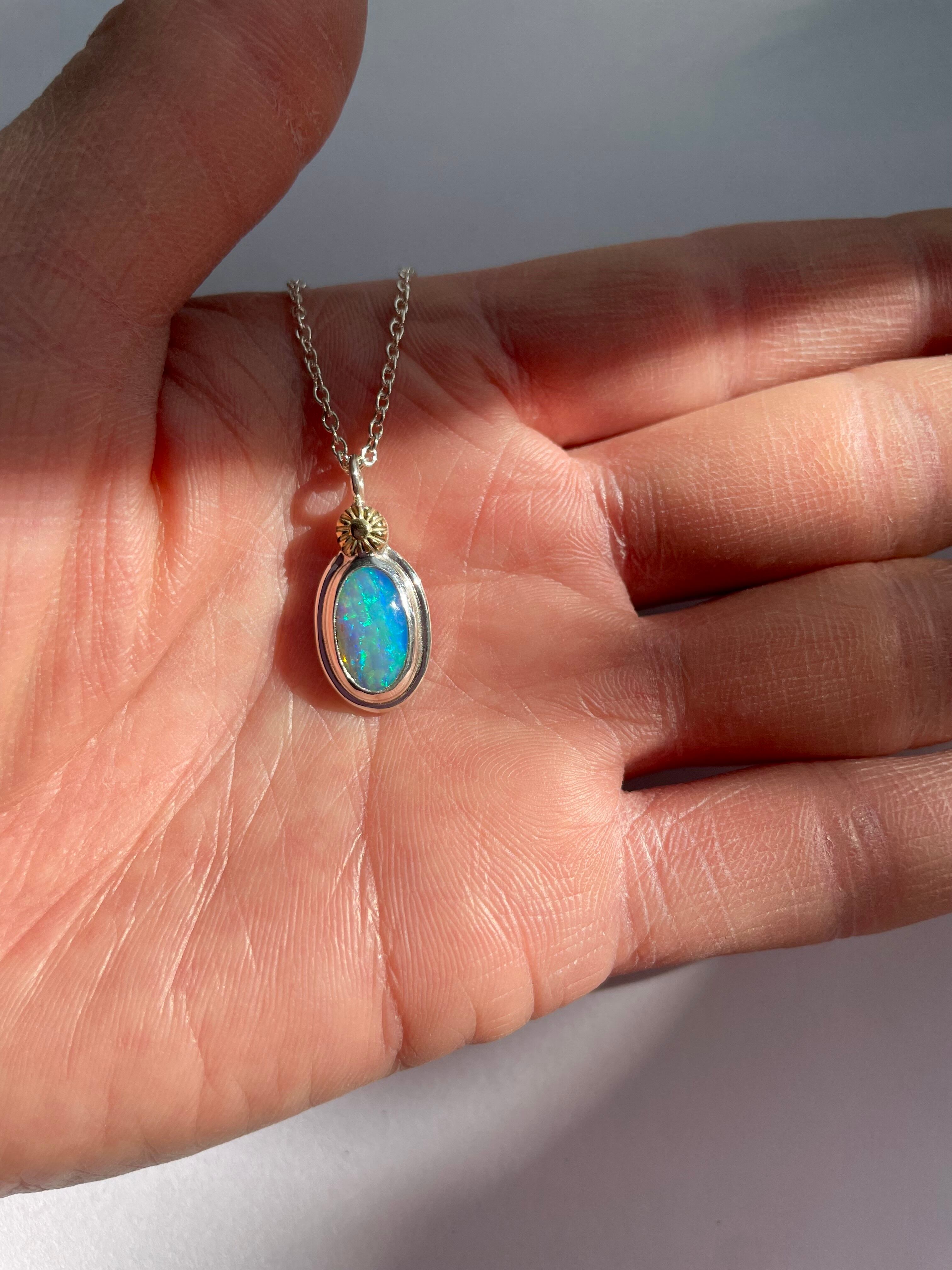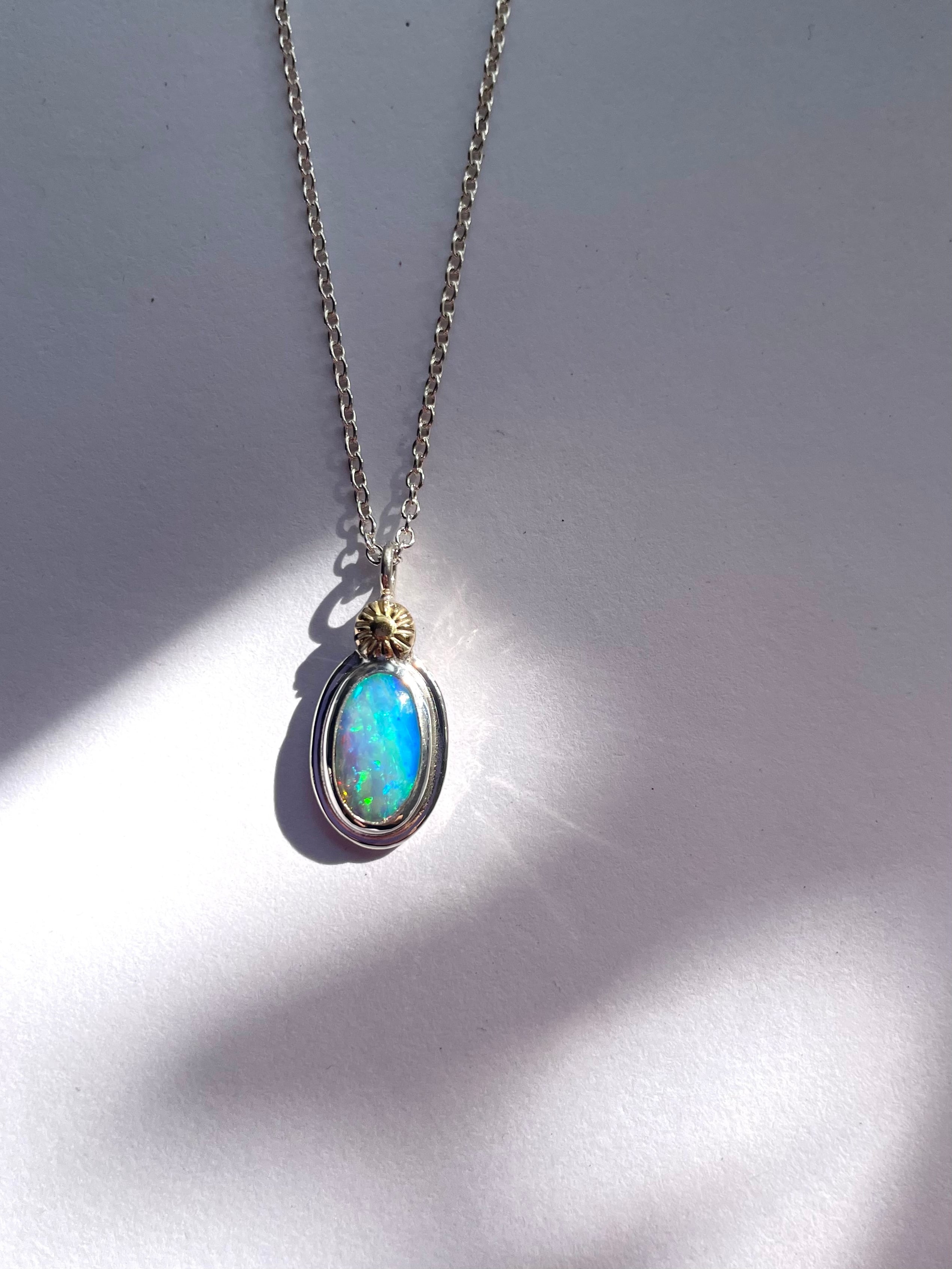 ブルーとグリーンが混ざり合った美しい南国の海のようなオパールをシンプルなネックレスに仕上げました。